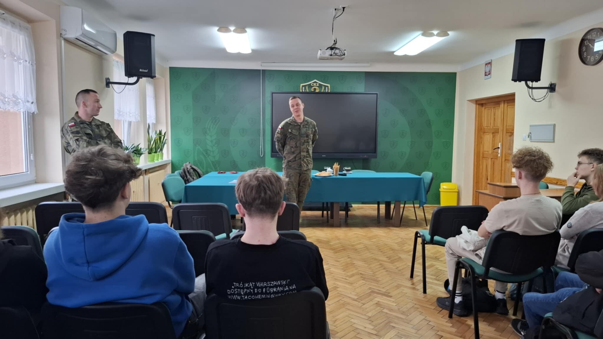 W dniu 17.11.2025 r. w Zespole Szkół Ponadpodstawowych nr 2 Centrum Kształcenia Zawodowego w Łowiczu odbyło się z spotkanie uczniów z Technikum nr 2 z żołnierzami Wojska Polskiego w ramach programu edukacyjno-obronnego „Edukacja z wojskiem”, którego celem było popularyzowanie wiedzy z obszaru zarządzania bezpieczeństwem, obrony cywilnej, cyberbezpieczeństwa, ratownictwa medycznego, systemu alarmowania, łączności